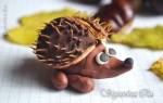 Видео подробного мастер-класса, как сделать красивого ежика, можно посмотреть в Интернете или воспользоваться нашими подсказками поэтапного выполнения поделки: