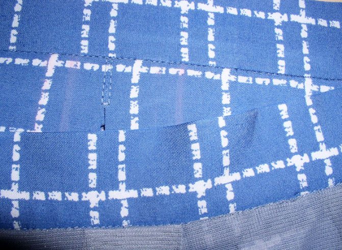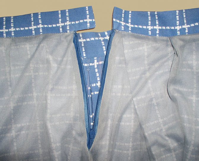 Рассекаю припуски на поясе, отступив от молнии 2 см. Не дохожу до машинной строчки 1 — 2 мм, чтобы пояс не посыпался.
