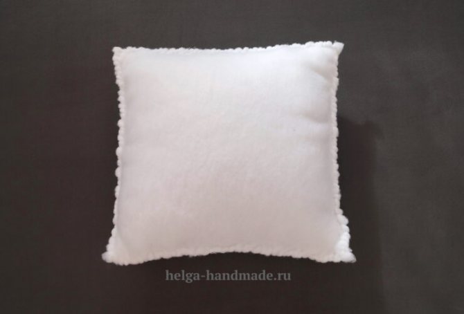 - прямоугольник сложить пополам и прошить, оставляя на одной из сторон отверстие для наполнения подушки перьями.