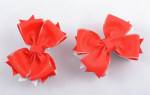 Из атласной ленты можно изготовить небольшие объемные бантики. На изготовление одной вещицы потребуется четыре отрезка длиною 10-12 сантиметров.