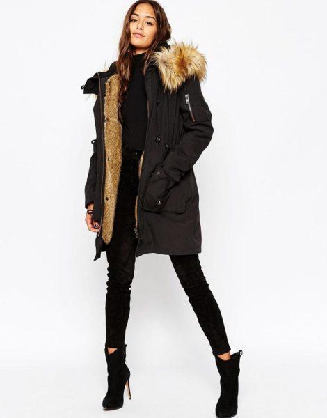 Для холодного времени дизайнеры предлагают девушкам утепленный вариант куртки. Изделие, декорированное натуральным или искусственным эко-мехом, выглядит шикарно. Женственная парка поможет создать яркий аутфит.