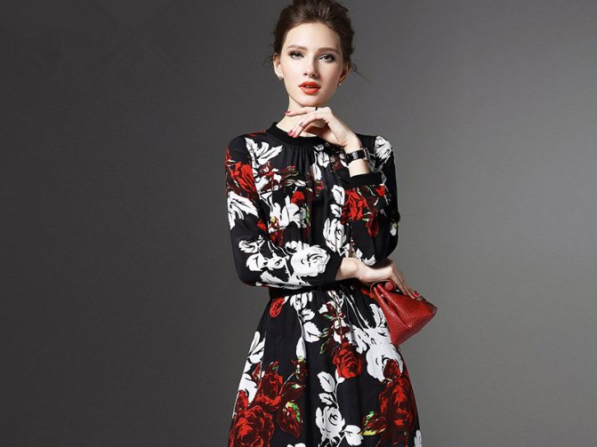 - Подбираем принт. С помощью грамотного выбора расцветки наряда тоже можно сместить акценты на своей фигуре. Так, дамам в теле рекомендованы темные тона: глубокий синий, коричневый, бордовый, фиолетовый, черный. Среди платьев из штапеля можно найти любые варианты, поэтому труда с подбором наряда не будет.Рисунок должен быть средним по размеру: не очень крупным, но и не мелким. Броские узоры, сконцентрированные в одной части платья, подчеркнут какой-то элемент фигуры. А полной женщине нужен обратный эффект: чтобы внимание разошлось по всему телу. Поэтому выбираем не очень яркий принт, равномерно распределенный по платью. Подойдут и вертикальные полоски, которые могут быть элементом как расцветки, так и декора: например, длинная молния или декоративный шов.