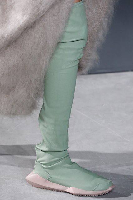 Высокие замшевые сапоги мятного цвета, с круглым носком, на низком ходу из коллекции Rick Owens.