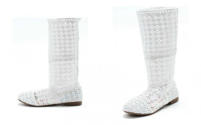 - Летние. В отличие от первых двух моделей, этот вариант менее популярен. Голенище имеет форму чулка, облегающего ногу. Существуют варианты с перфорацией, шнурками. Подошва очень тонкая.