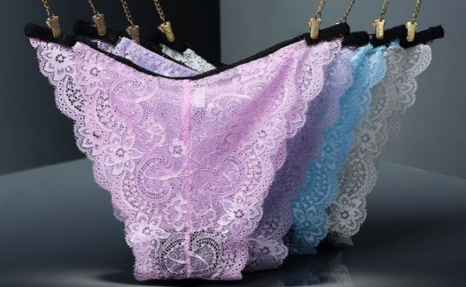 - Вероятность порчи трусов. Кружевное белье может не перенести контакта со стразами, нашивками и другими элементами, которыми часто украшены современные носки.