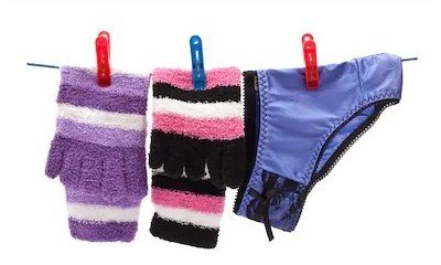 - Отжимать трусы желательно, продавив через полотенце, а сушить – перекинув через верёвку или подвесив за резинку на двух прищепках с мягкой пружиной (проверить легко, защепив мизинец — больно быть не должно).