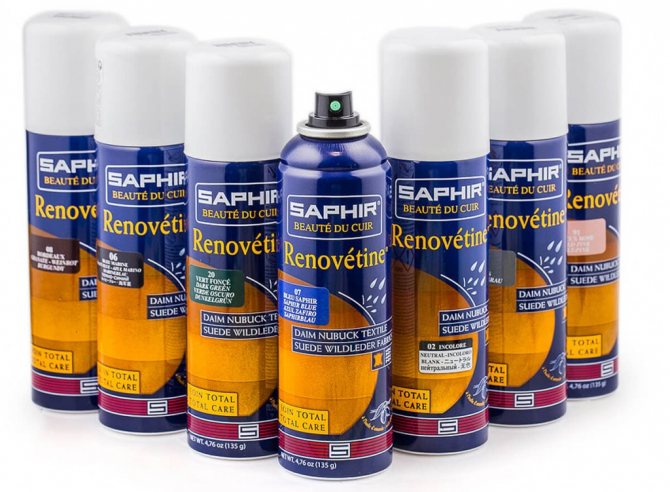 Даже самое аккуратное ношение и тщательный уход не гарантируют долгого сохранения цвета обуви. Велюр может выгореть на солнце, потускнеть на складках и заломах, выцвести при длительной эксплуатации. Для окрашивания «кожаного бархата» используют только специальные спреи или эмульсии. Народными методами проблему не решить. Желательно не экономить и приобретать профессиональные красители нужного цвета.