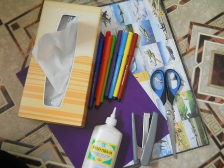 - Инструменты. Ножниц, клея, цветного и двухстороннего скотча вполне достаточно.