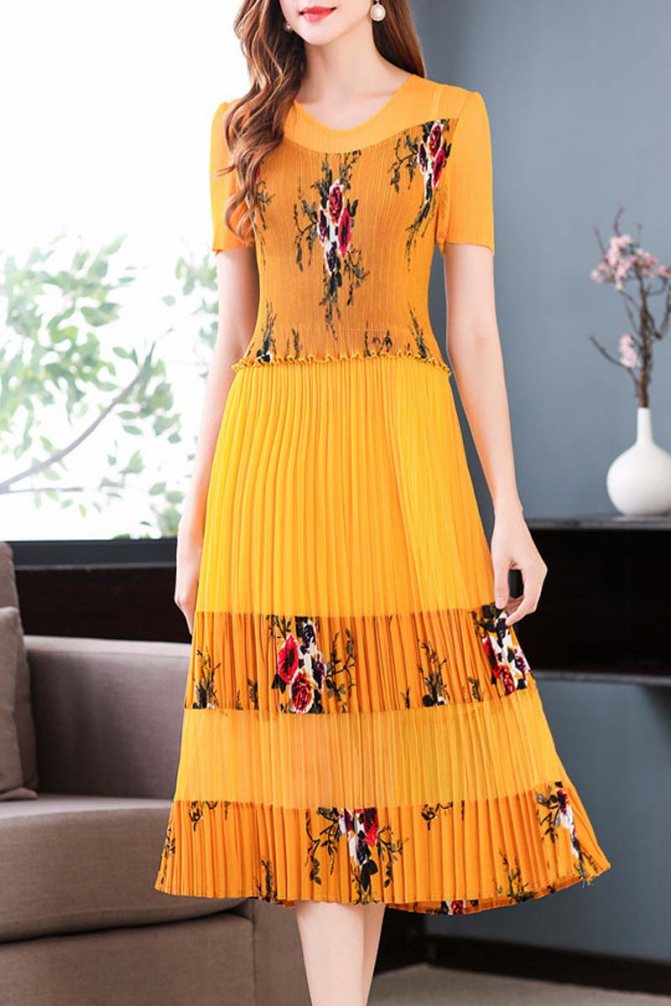 - коктейльный вариант. Яркие и воздушные платья могут быть представлены как с юбкой-плиссе, так и с этим декором по длине всего изделия. Расцветки для данного стиля чаще выбирают цветочные или геометрические. Цветовой фон —от сочного до нежно-пастельного. Такой вариант отлично впишется для прогулок, романтических свиданий и морских путешествий;