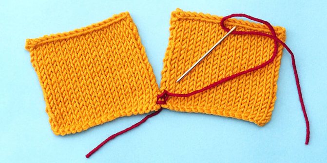 Этот вид матрасного шва используют для сшивания полотен, связанных лицевой гладью.