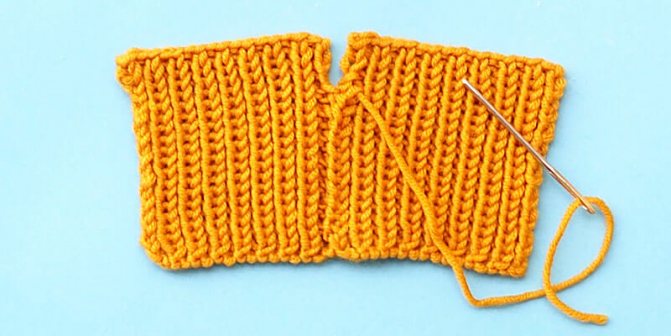Такой же способ с открытыми элементами. В этом случае вязание нужно сшить не закрывая. Вы продеваете иглу по очереди в петли то на одной, то на другой спице. После этого они остаются на иголке, и постепенно затягиваете ниточку.