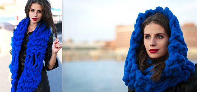 Капюшон-шарф – это оригинальный головной убор в виде капюшона и объемного теплого шарфа одновременно. Такое изделие изготавливается проще, чем раздельный комплект, а выглядит шарф-капюшон «два в одном» гораздо интереснее обычной классики.