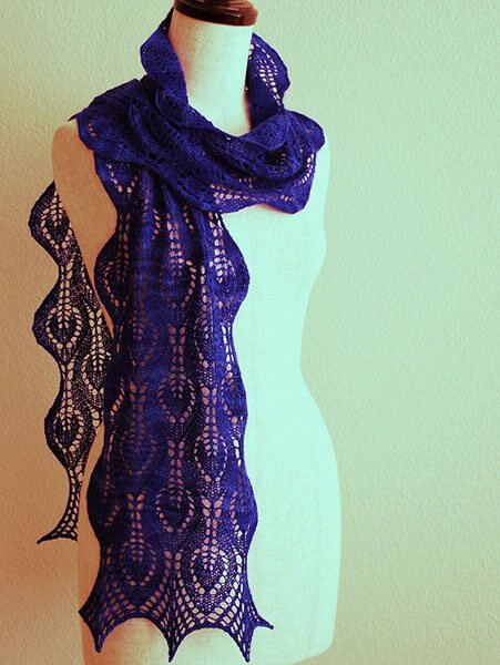 Шарфы не обязательно должны быть именно прямоугольными. Для разнообразия края можно сделать из фестонов или волны, в результате готовое изделие смотрится еще красивее. Такое оформление можно сделать на спицах, основным рисунком ажура. Часто для создания каймы используют обвязывание трикотажного полотна крючком.