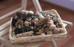 - елочные шары (их надевают на зубочистки, воткнутые в основу кроны, и приклеивают внизу);