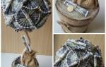 Очень интересно выглядит и топиарий из купюр, но не буду врать — у меня красивый топиарий из денежных купюр пока не получился, я еще работаю над деревцем из купюр своими руками, поэтому если вы хотите сделать денежное дерево из монет или приманивающее достаток дерево из купюр, то посмотрите мастер-класс, как сделать денежное дерево своими руками.