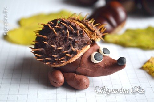 Вот такой милый ёжик из каштанов и пластилина получился.