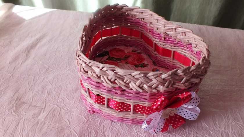 Рассмотрим процесс плетения поделки из газетных трубочек для начинающих пошагово на примере небольшой корзиночки.