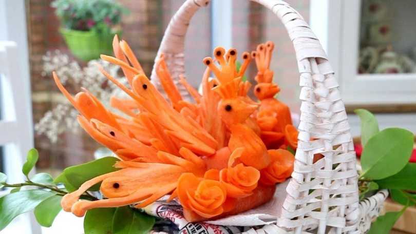 На самом деле морковь очень хороший материал, из нее можно вырезать любую фигуру. Это как палочка, из которой с помощью стамески вырезают любые фигурки.