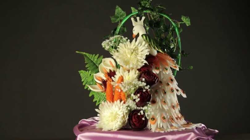 Очень эффектно смотрятся выполненные в технике карвинга поделки из помидоров. Своими руками вы сможете изготовить цветы, которые удивят ваших гостей.