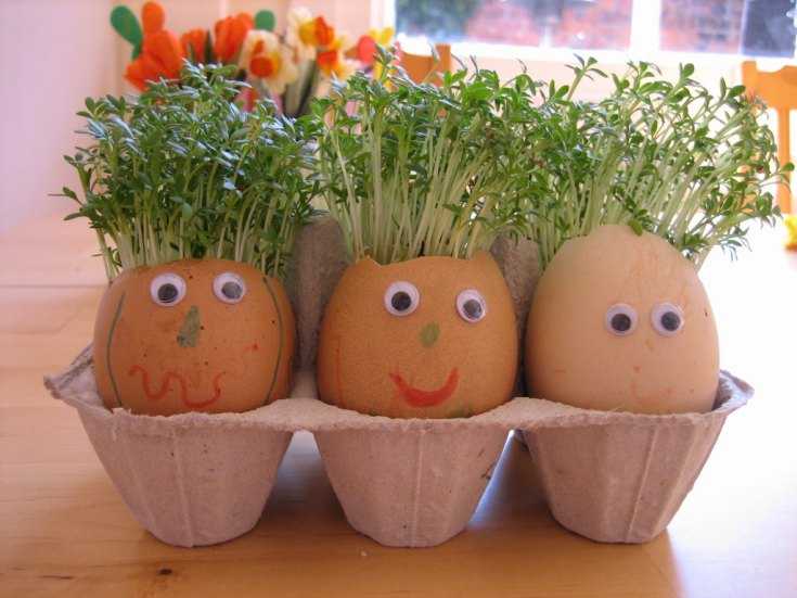 Чтобы придать яйцу индивидуальность, вы можете нарисовать на яйце дружелюбное лицо, как показано на фото поделок из яичной скорлупы, или украсить его на свой вкус!