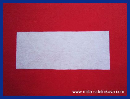 Первым делом необходимо выкроить саму листочку. Для этого выкраивается из ткани изделия прямоугольник в два сложения. Согнутый пополам прямоугольник по высоте и ширине должен соответствовать размерам будущей листочки. Именно в сложении пополам деталь будет пришиваться. Внутрь выкроенного участка прокладывается клеевой материал.