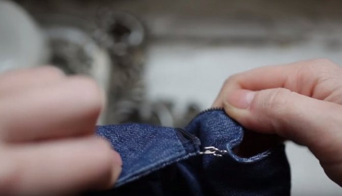 Для начала устройте примерку и замеряйте, сколько же «лишних» сантиметров насчитывается на талии джинсов или юбки. Теперь вооружайтесь линейкой и такое же количество отложите на поясе: справа от самой верхушки ширинки. Туда пришейте металлическую петельку.