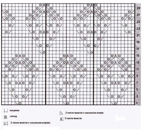 Узор 29 «Вертикаль из ромбов и бантиков» (на 22 петли и 18 рядов)