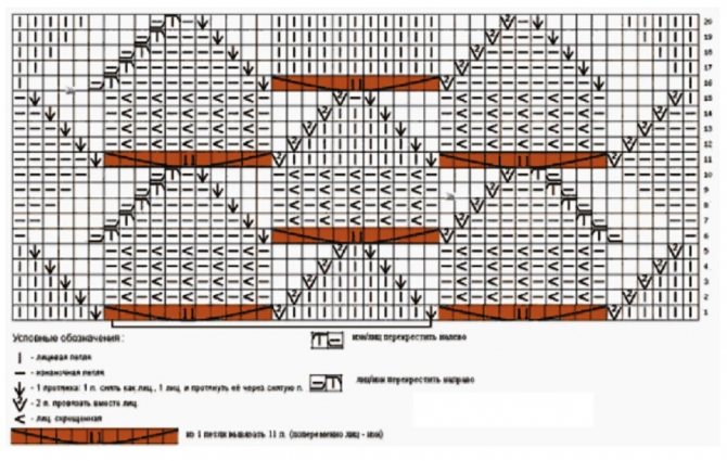 Узор 73 «Ромбы со вставкой» (на 18 петель и 22 ряда)