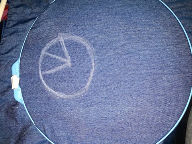 Начинается мастер-класс с создания эскиза. При помощи маркера на ткани рисуется круг, диаметром, совпадающим с размером будущей розы.