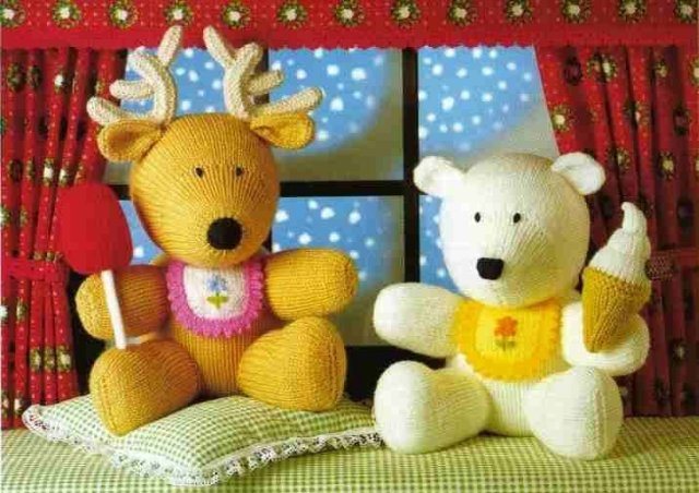 Белый мишка и олень спицами