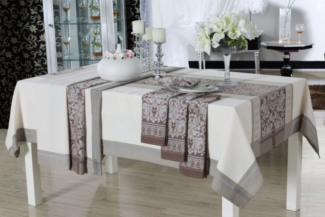 Такие ткани подойдут под пошив скатертей для ресторанов и для дома.