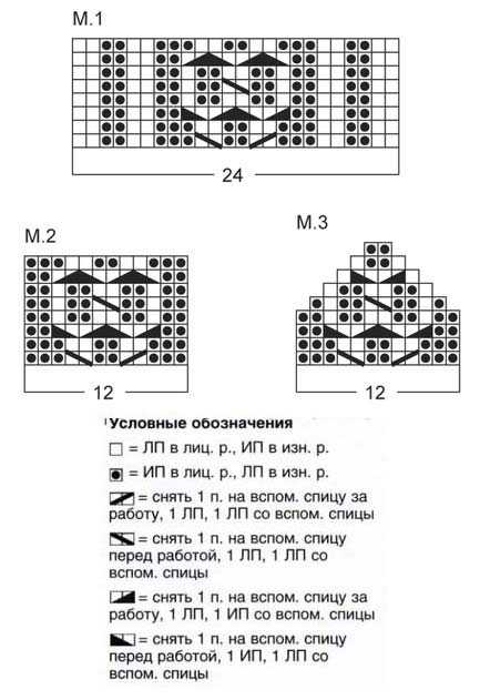 - Прибавки выполняются через каждые два круга в третьем еще 5 раз. После последней прибавки идет 1 круг по рисунку и 14 п. получившегося клина переносятся на булавку.