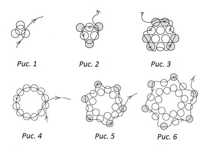 - техникой параллельного плетения создаются ряды из 2-х, 3-х, 5-и и 7-и бусинок.