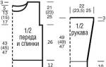 - Передняя часть вяжется по аналогии со спинкой до высоты 36 см, потом используется схема 2 для вязания вместе с убавлениями.