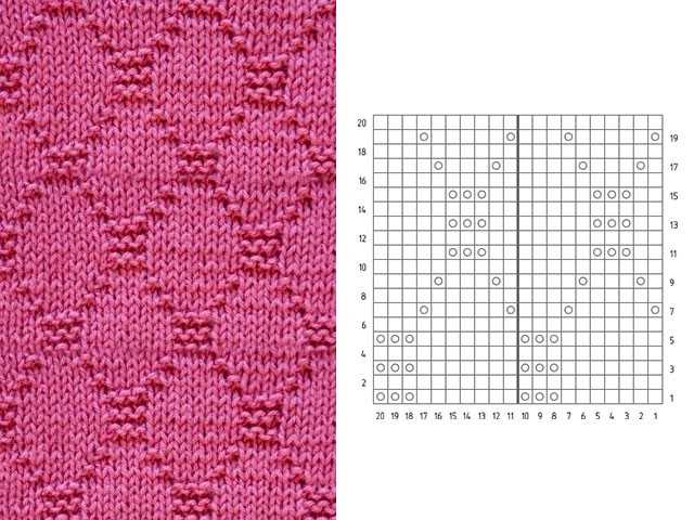 Рельефные ромбы с узелками красиво смотрятся в шапочках, кардиганах, свитерах, кофточках. Узор может использоваться в вязании пледов.