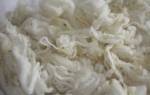 - Полутонкая. Имеет более грубые волокна с переходных или смешанных волокон, огрубевшего пуха. Получается с овец полутонкорунных пород, и помесной скотины.