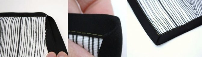 - Обстрачиваем бейкой дальше весь срез кармана, складывая ее пополам.