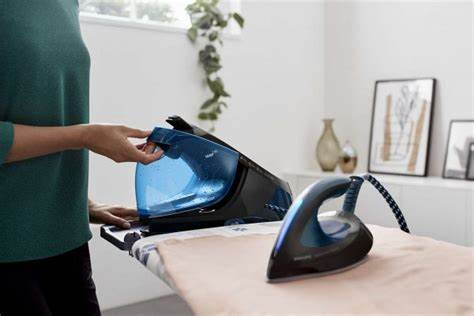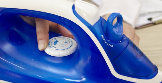 - Включить утюг на режим «Синтетика» без наполнения емкости отпаривателя водой.