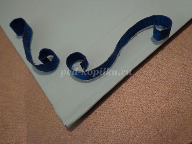 Для рамочки из синих колечек делаем вот такие заготовки. Их нужно 8 штук.