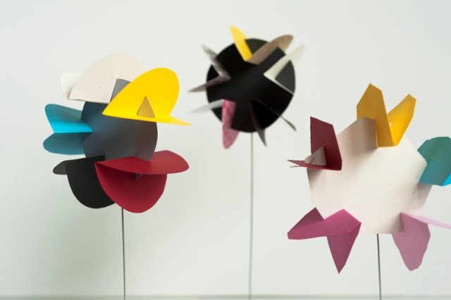 Приклей объемные цветы к кончикам тонких деревянных палочек. Готово!