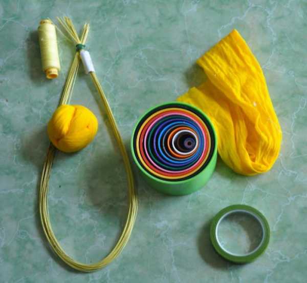 При изготовлении важную роль играют тычинки ярко-желтого цвета, которых должно быть достаточно много. Если вам не удалось их приобрести в магазине, то попытайтесь изготовить эти детали сами. Для этого на отрезки желтой проволоки (длиной 5-6 см) нужно намотать влажный кусочек ваты, чтобы получился довольно плотный шарик. Когда «тычинка» подсохнет, ее нужно опустить на несколько секунд в желтую гуашь.