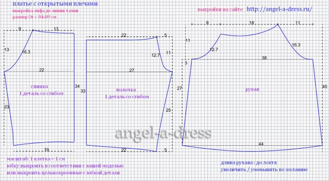 Выкройка платья XS и S (размер на обхват груди 84-89 и 90-92 сантиметра):