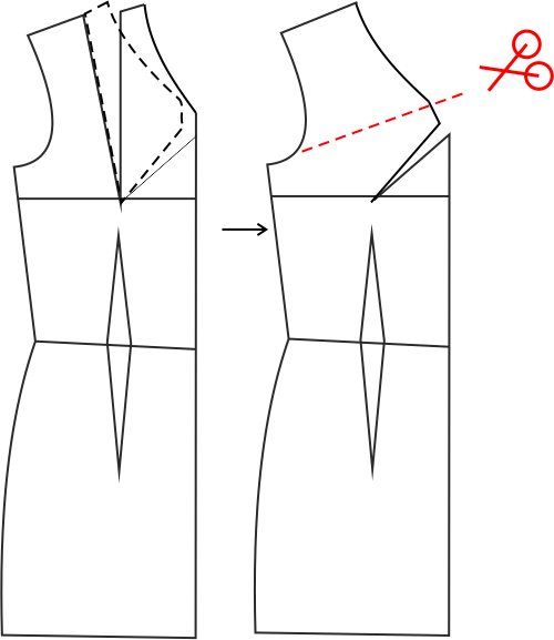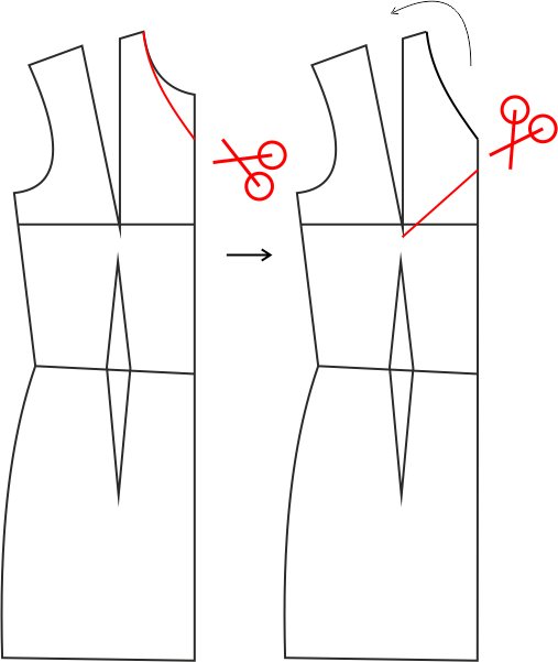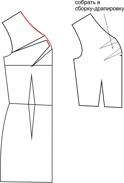 - После того, как вытачка переведена, наметим дополнительную линию разреза, для драпировки.