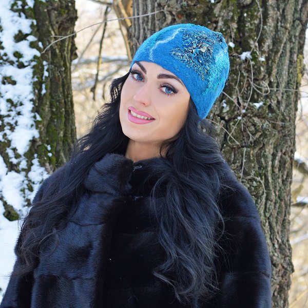Войлочные шапки как арт-объекты! Тут есть где разгуляться фантазии мастеров. Ведь в войлочной технике можно творить не только на плоскости, но и в трехмерном пространстве. Шапки превращаются в объемные цветы на голове, поля, луга, волны… Такие вещи уникальны, и даже при желании автор вряд ли сумеет создать точную копию.