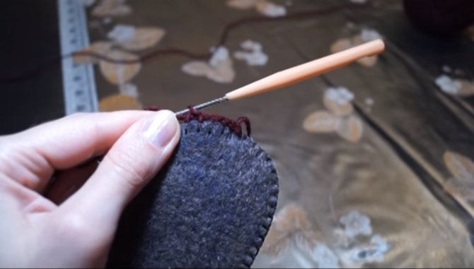 Дальше нужно взять ажурную белую тесьму и протянуть ее между зубчиками вилок по самому краю.