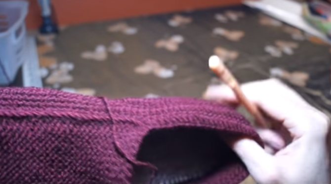 Теперь на белые частицы приклеиваем синтепон. Блестящую часть по прямому срезу на один сантиметр шириной смазываем клеем и присоединяем к изнаночной стороне ткани.