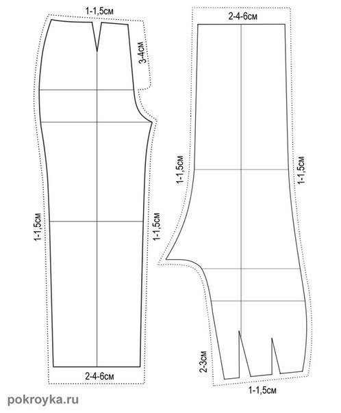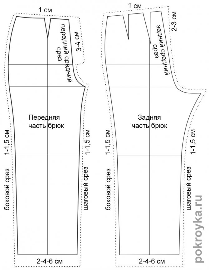 - на средний задний шов 2-3 см (если потребуется расширить брюки)