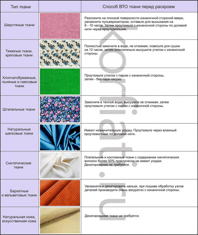 Воспользуйтесь таблицей ниже, чтобы определить способ ВТО ткани перед раскроем.