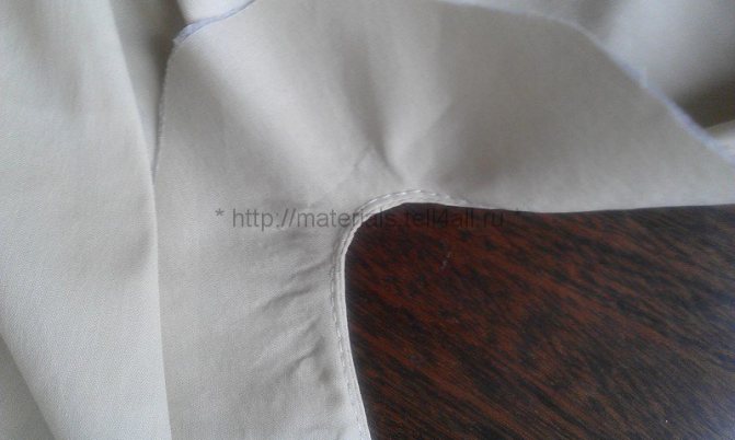 Обтачка пришивается к лицевой стороне. Необходимо заранее наметить линию шва. С целью фиксации форм используются булавки. Касательно выреза многое зависит от типа ткани. По линиям производятся разрезы.