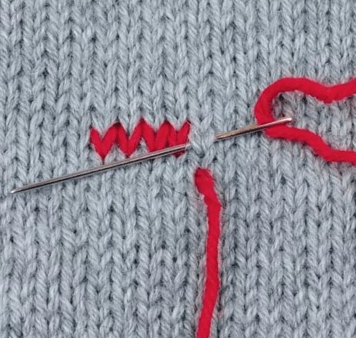 В вышивке на вязанных вещах отлично смотрится шов «козлик» Определяют полоску для вышивки и выполняют слева направо.